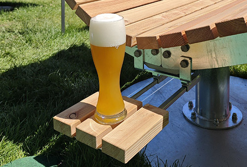 Wetterbeständiges Lärchen-Massivholz, feuerverzinkter Stahl und ein extrem belastbares Axial-Kugellager in Industriequalität sorgen für Stabilität, Komfort und maximale Langlebigkeit.